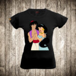 zenska majica boja crna slika aladin i jasmin u zagrljaju