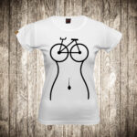 zenska majica boja bela slika bicikl i zensko telo