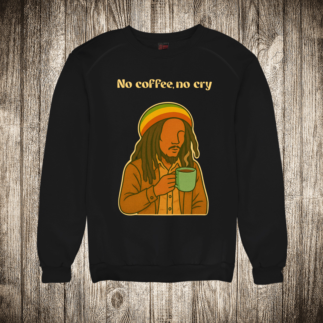 duks bez kapuljace boja crna slika bob marli no coffe no cry kafa