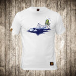 muska majica boja bela slika buba svira violinu na potonulom brodu