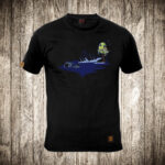 muska majica boja crna slika buba svira violinu na potonulom brodu