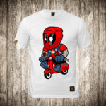 muska majica boja bela slika deadpool na skuteru