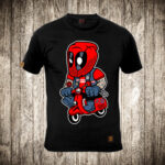 muska majica boja crna slika deadpool na skuteru