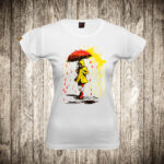 zenska majica boja bela slika devojcica sa kabanicom i kisobranom 1