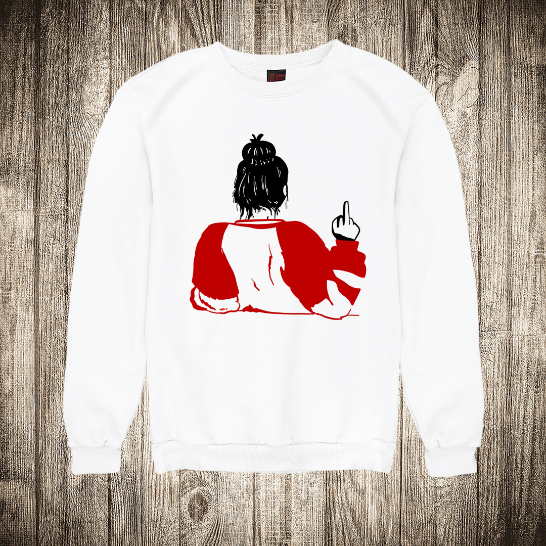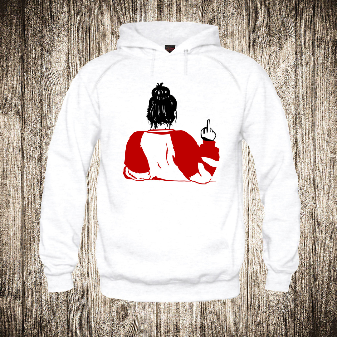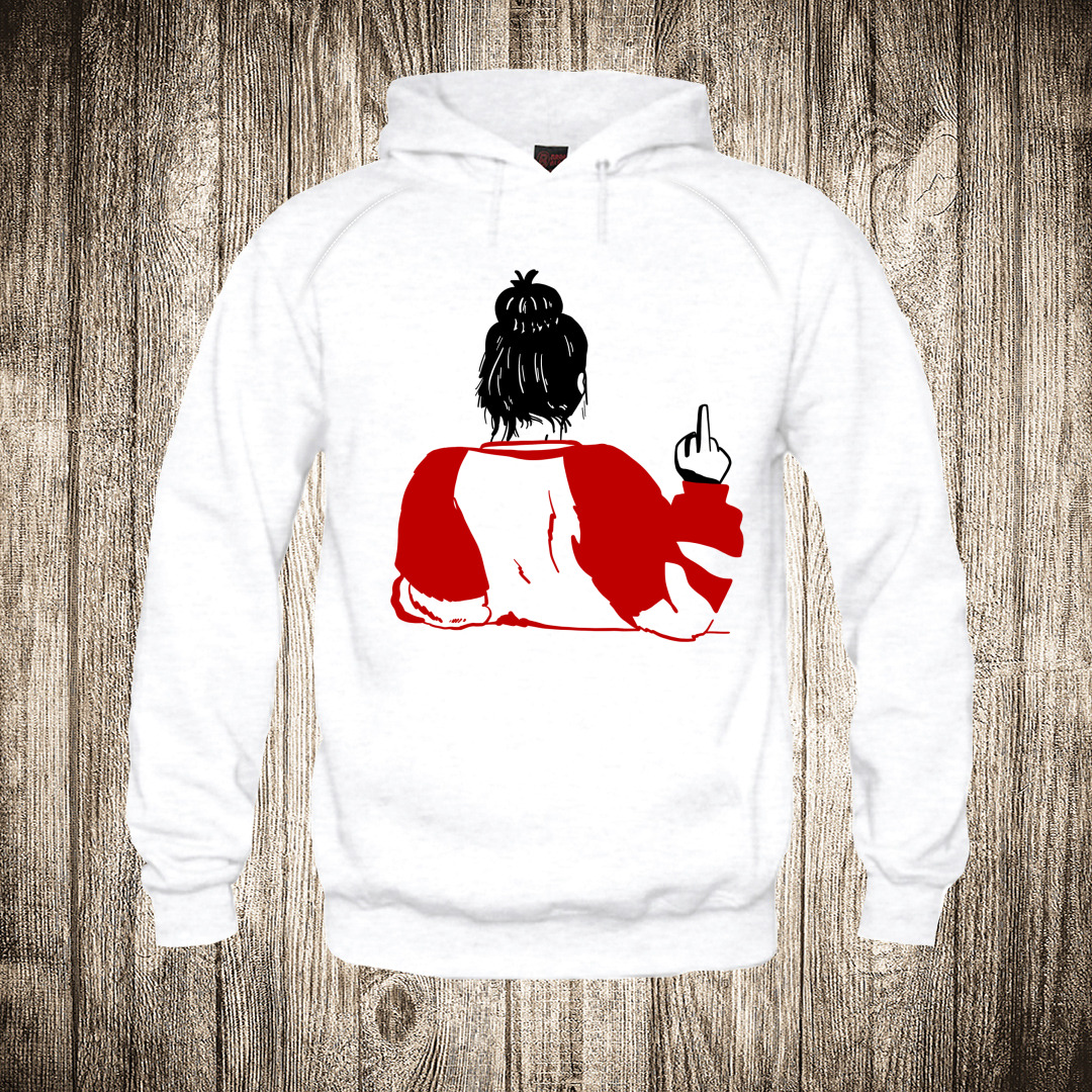 duks sa kapuljacom boja bela slika devojka srednji prst