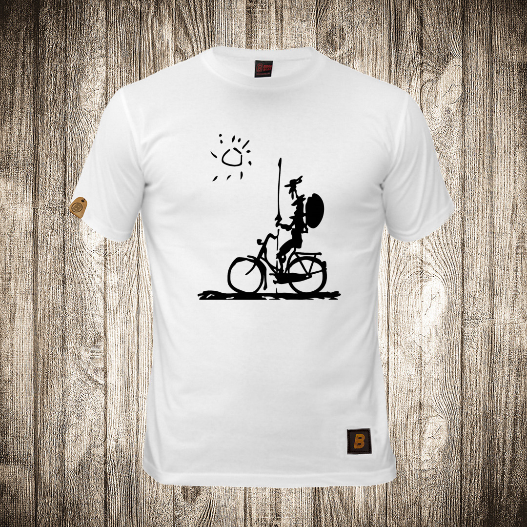 muska majica boja bela slika don kihot na bicikli