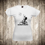 zenska majica boja bela slika don kihot na bicikli