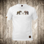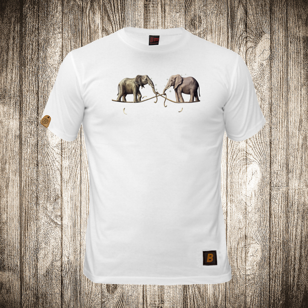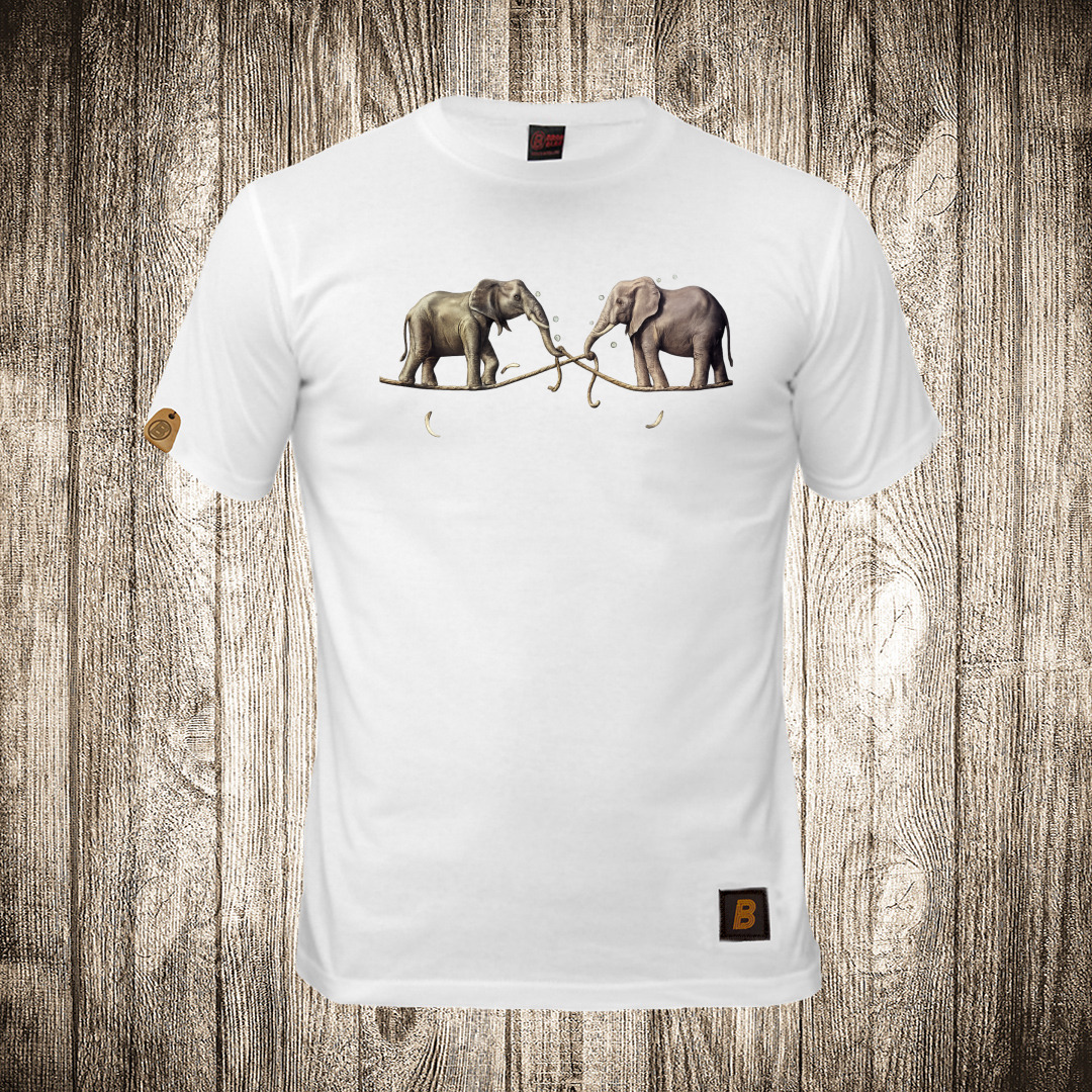 muska majica boja bela slika dva slona na konopcu