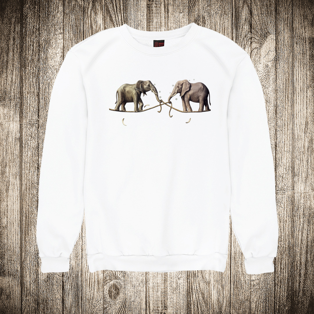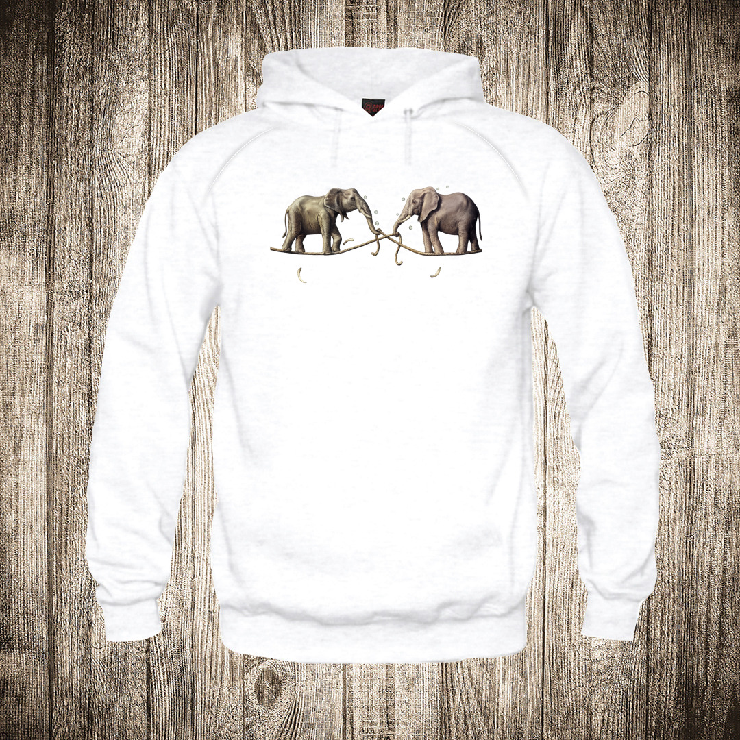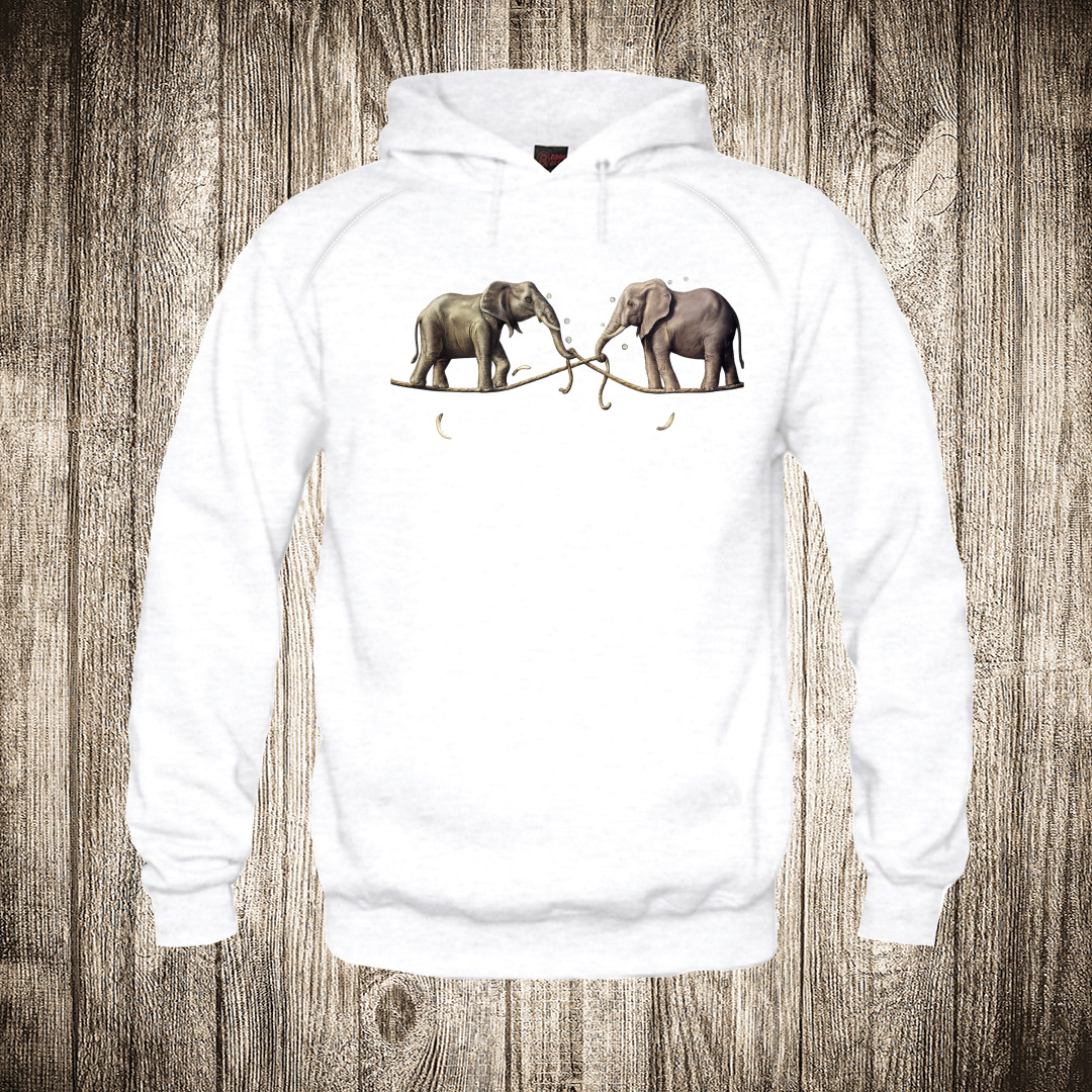 duks bez kapuljace boja bela slika dva slona na konopcu