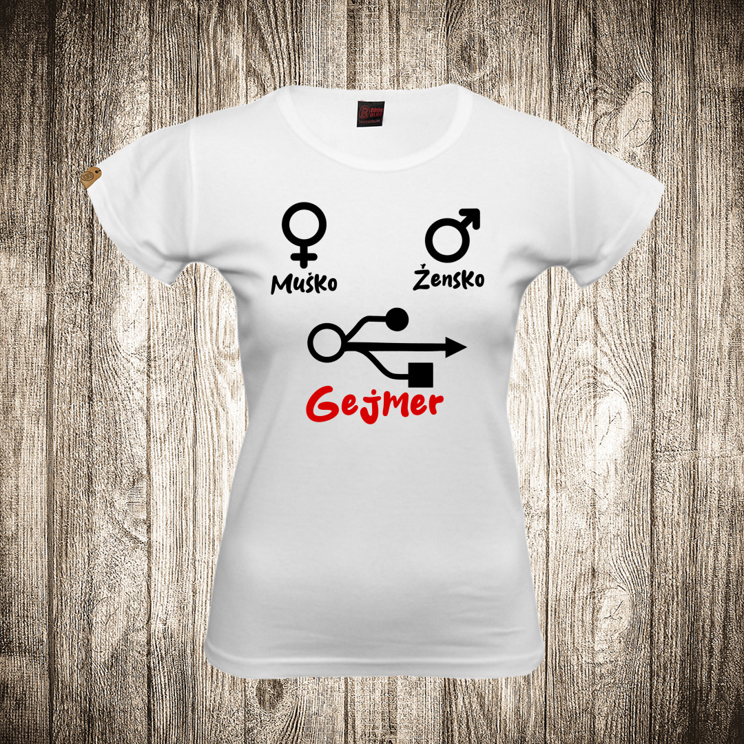 zenska majica boja bela slika gejmer znak musko i zensko