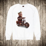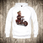 decija majica boja bela slika groot na motoru
