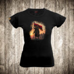 zenska majica boja crna slika srpski vojnik na vrhu brda tvrdjava