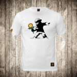 decija majica boja bela slika huligan sa molotovljevim koktelom super mario sa cvetom