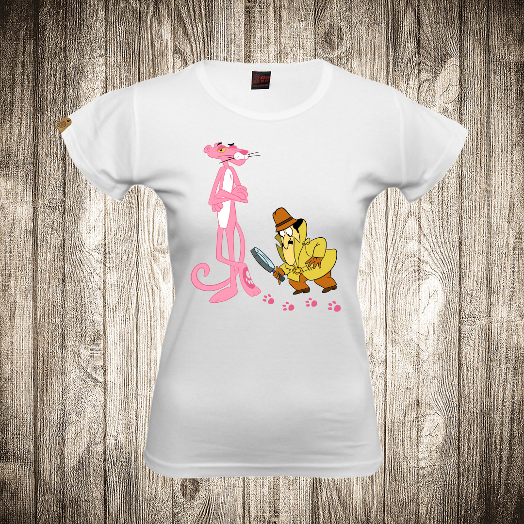 zenska majica boja bela slika pink panter i inspektor kluzo