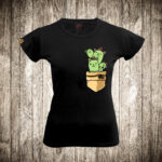 zenska majica boja crna slika kaktus 5 macka dzepni