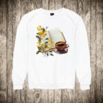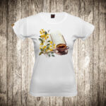 zenska majica boja bela slika knjige i cvece 2
