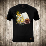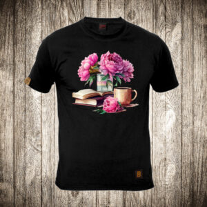 muska majica boja crna slika knjige i cvece 2