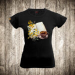 zenska majica boja crna slika knjige i cvece 2