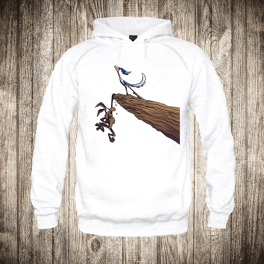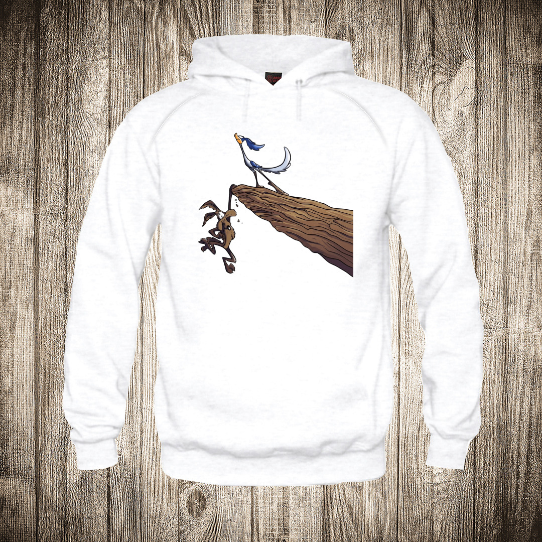 duks sa kapuljacom boja bela slika kojot i ptica trkacica na litici