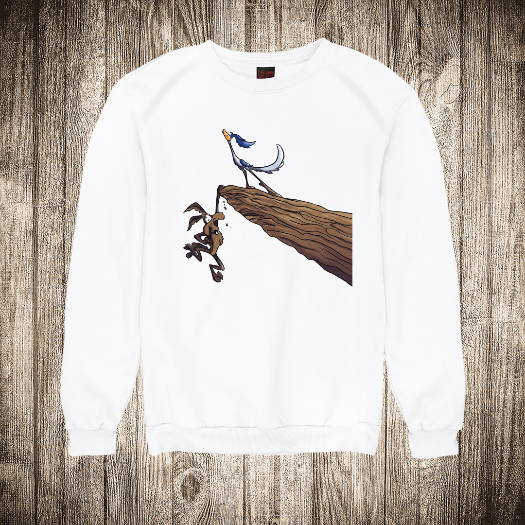 duks bez kapuljace boja bela slika kojot i ptica trkacica na litici