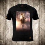 muska majica boja crna slika lav i covek priroda