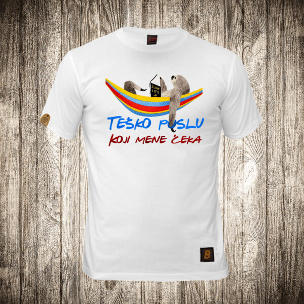 muska majica boja bela slika lenjivac tesko poslu koji mene ceka