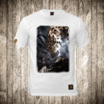 muska majica boja bela slika leopard i covek priroda