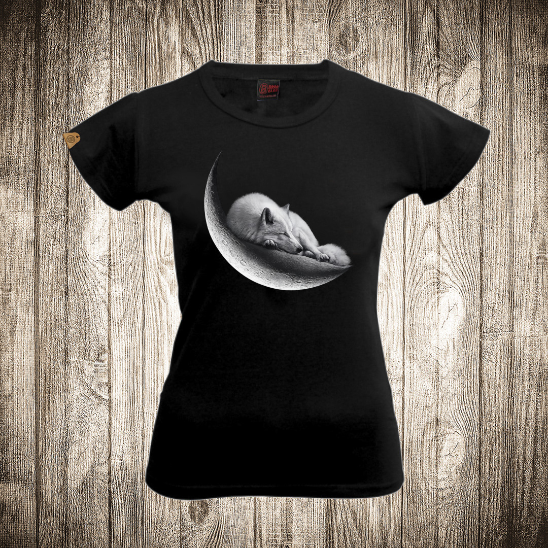 zenska majica boja crna slika lisica na mesecu