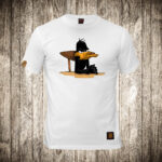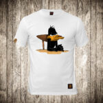 muska majica boja bela slika ljuti patak daca na stolici