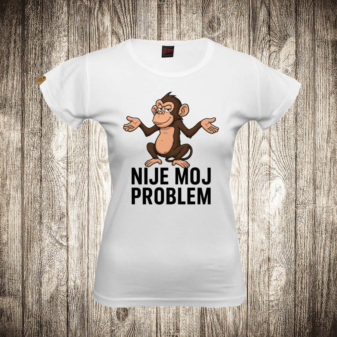 zenska majica boja bela slika majmun nije moj problem