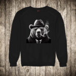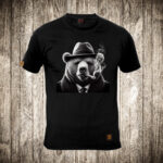 muska majica boja crna slika medved sa sesirom i tompusom