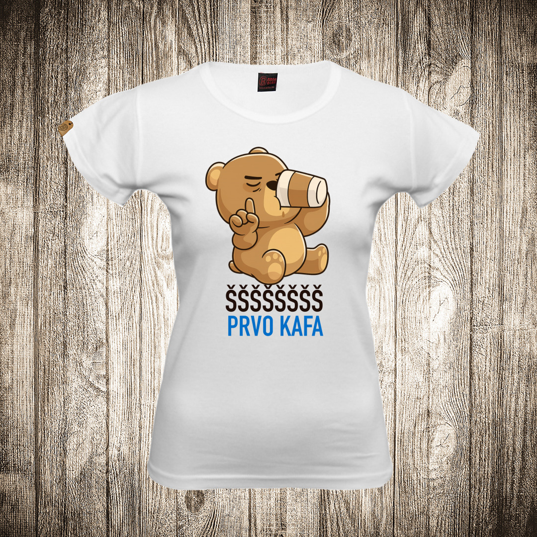 zenska majica boja bela slika medvedic ssss prvo kafa