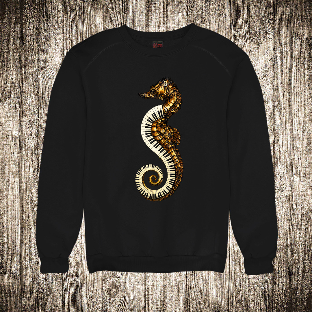 duks bez kapuljace boja crna slika morski konjic i klavir