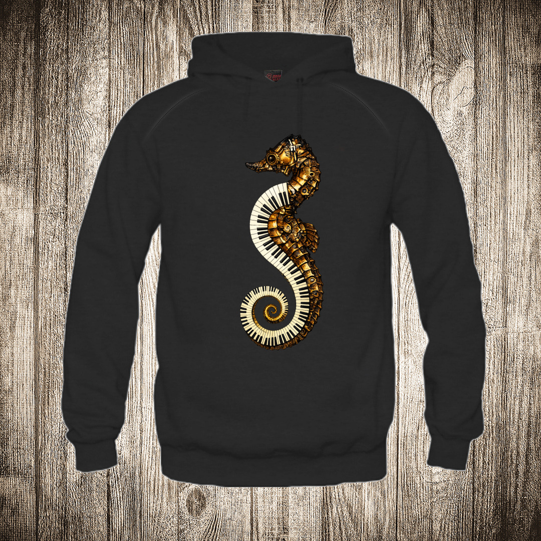 duks sa kapuljacom boja crna slika morski konjic i klavir