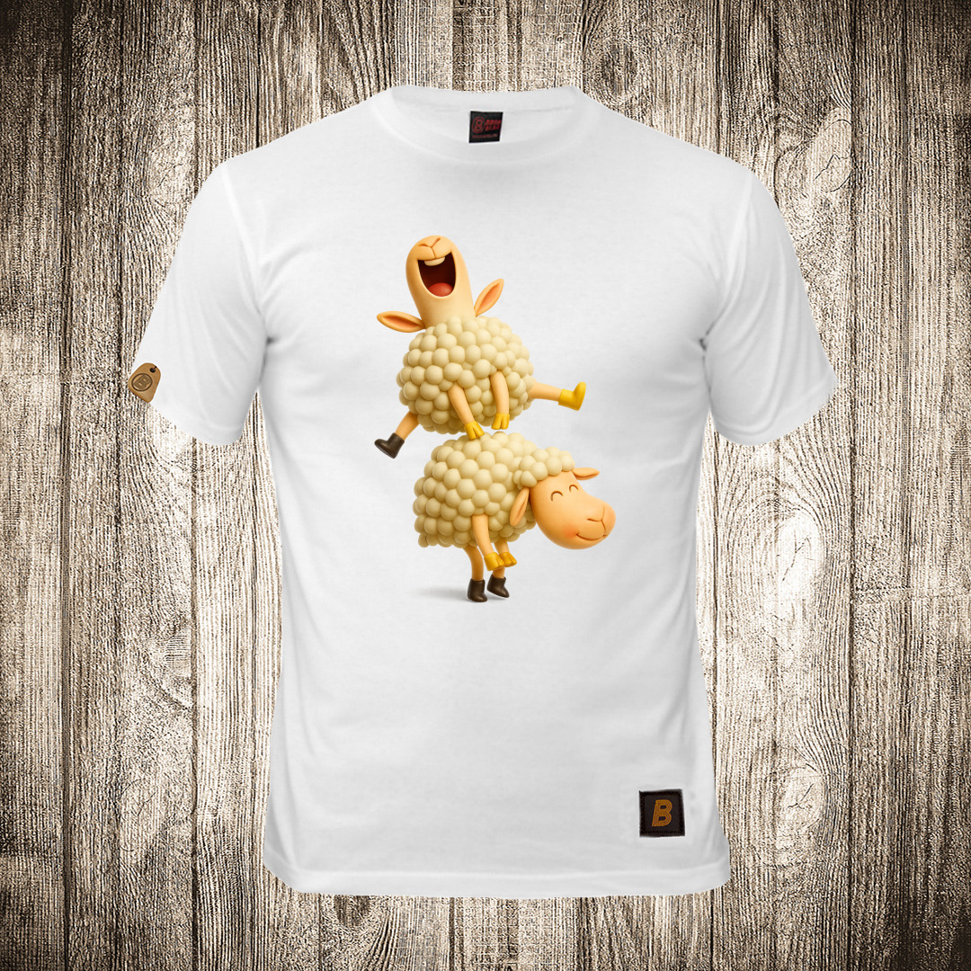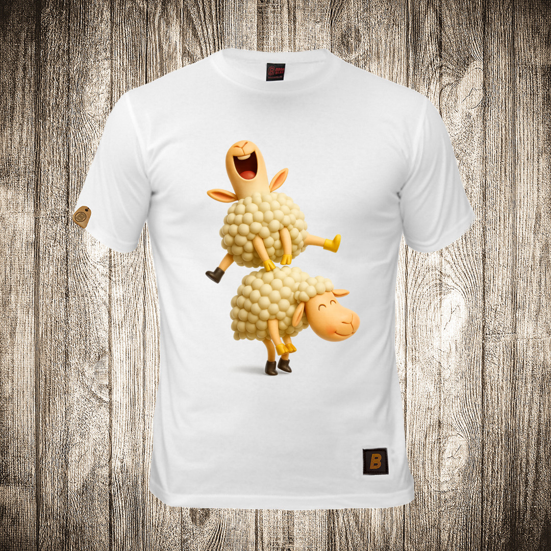 muska majica boja bela slika ovce igraju janjine