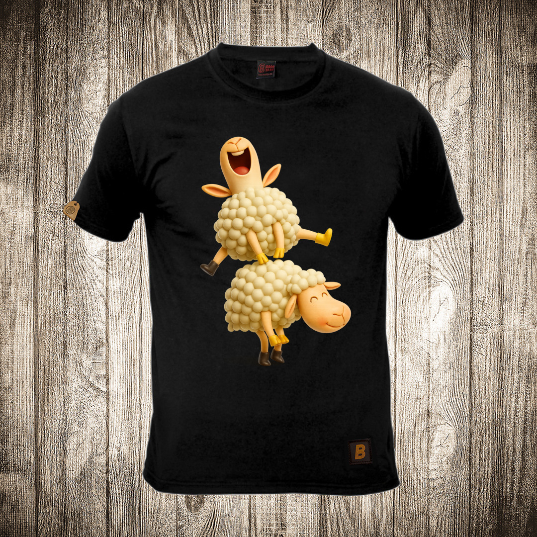 muska majica boja crna slika ovce igraju janjine