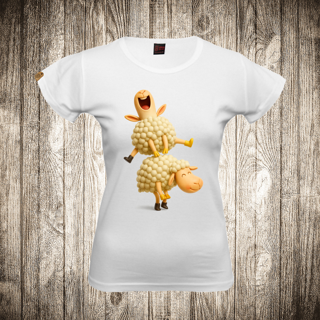 zenska majica boja bela slika ovce igraju janjine