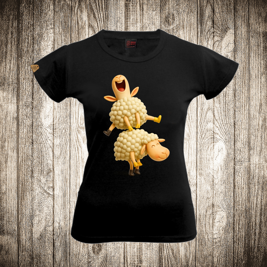 zenska majica boja crna slika ovce igraju janjine