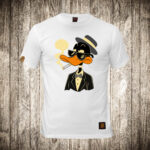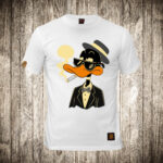 muska majica boja bela slika patak daca sa sesirom i cigarom
