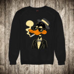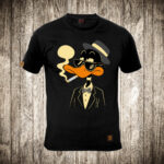 muska majica boja crna slika patak daca sa sesirom i cigarom