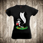 zenska majica boja crna slika pepe la tvor jabuka