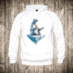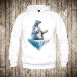 zenska majica boja bela slika polarni medved meditira na santi leda