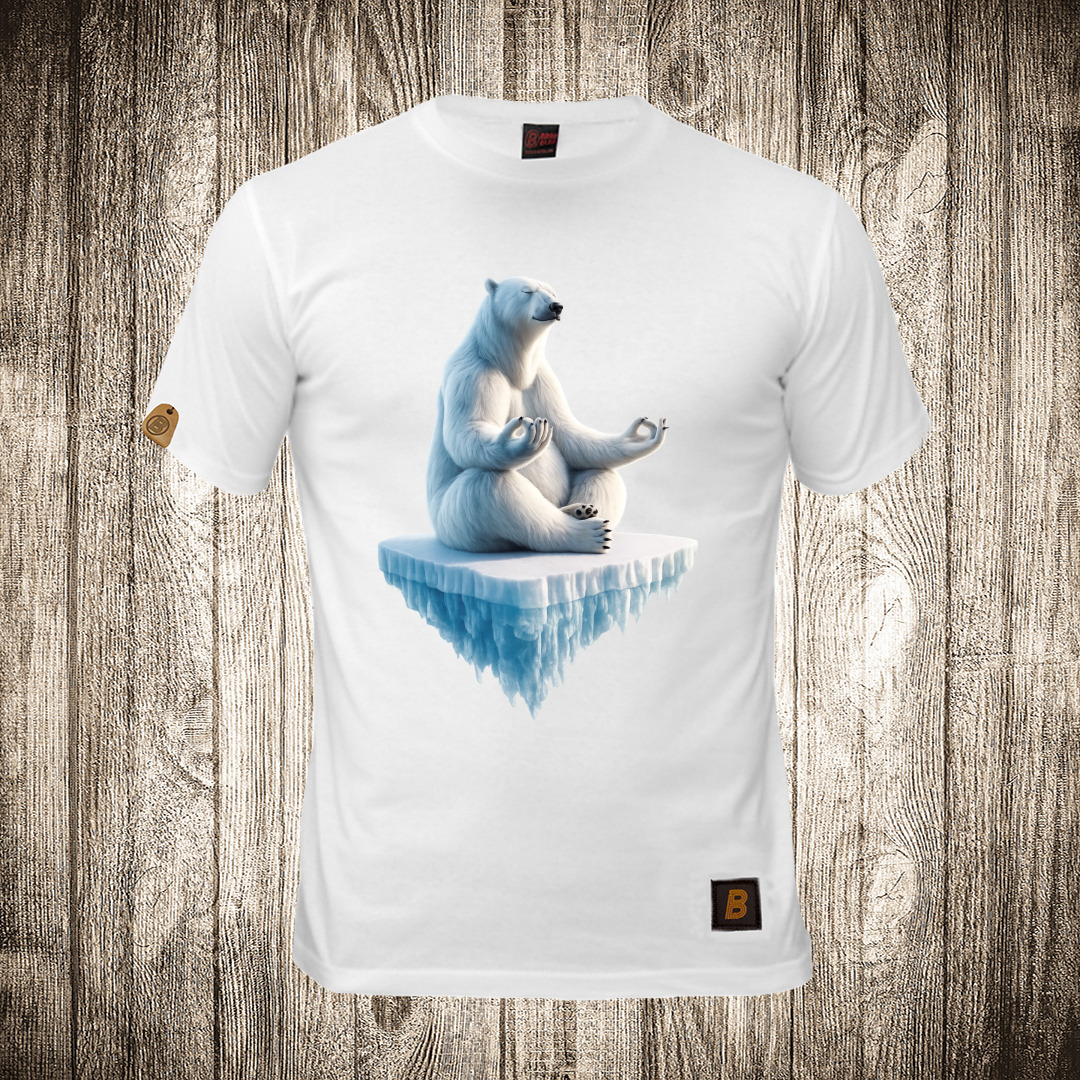 muska majica boja bela slika polarni medved meditira na santi leda