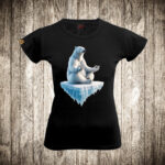 zenska majica boja crna slika polarni medved meditira na santi leda