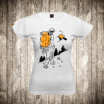 zenska majica boja bela slika put ka planini crtez kampovanje