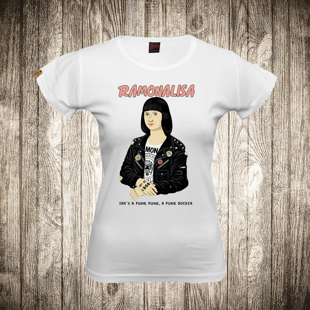 zenska majica boja bela slika ramonalisa ramones i mona liza