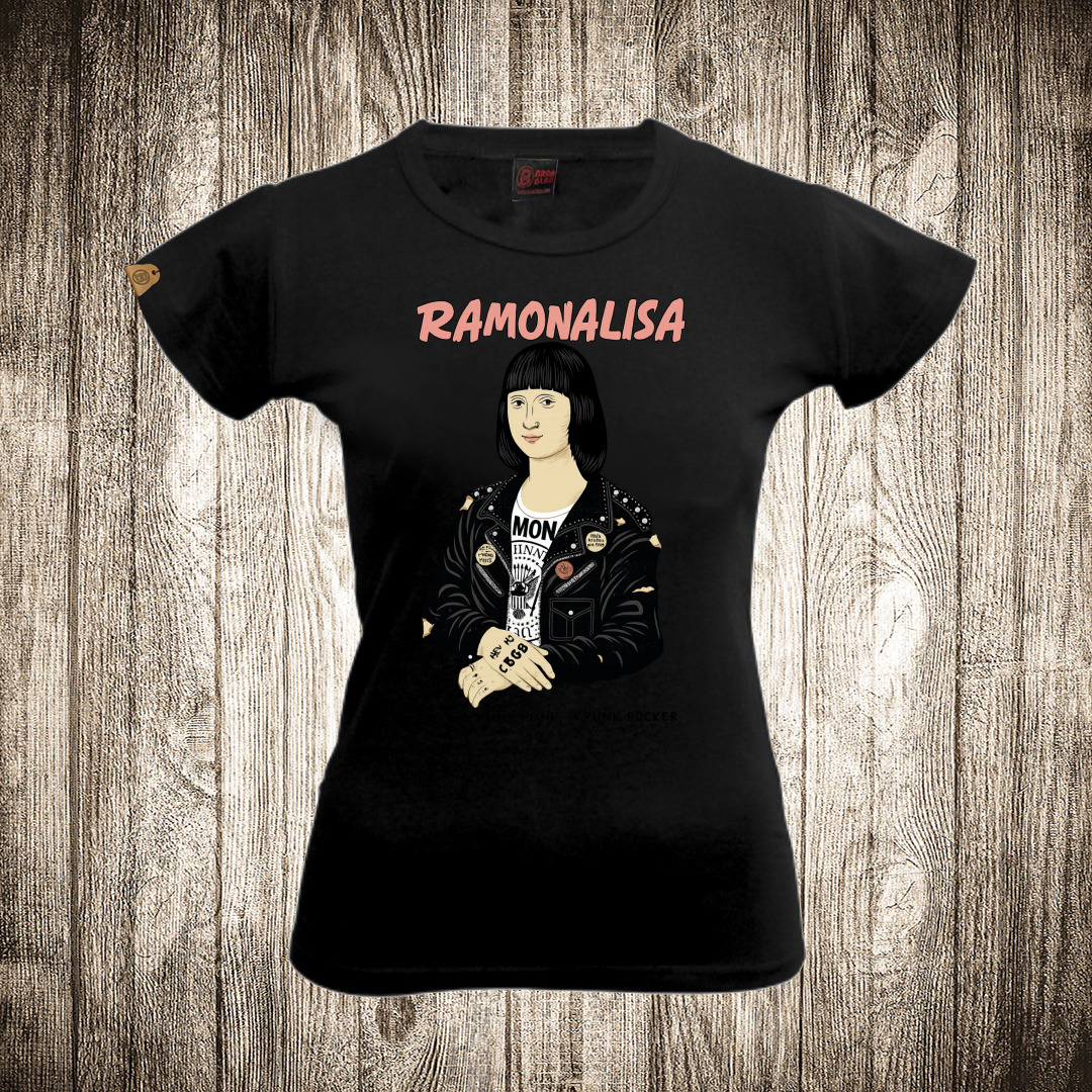 zenska majica boja crna slika ramonalisa ramones i mona liza