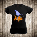 zenska majica boja crna slika riba jedrilica