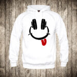 duks sa kapuljacom boja bela slika smajli slusalice muzika