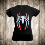 zenska majica boja crna slika spajdermen 3 logo